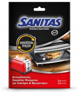 SANITAS TEFLON ΑΝΤΙΚΟΛΛΗΤΙΚΕΣ ΣΑΚΟΥΛΕΣ ΨΗΣΙΜΑΤΟΣ ΓΙΑ ΤΟΣΤΙΕΡΕΣ ΚΑΙ ΦΡΥΓΑΝΙΕΡΕΣ 2 ΤΕΜΑΧΙΑ